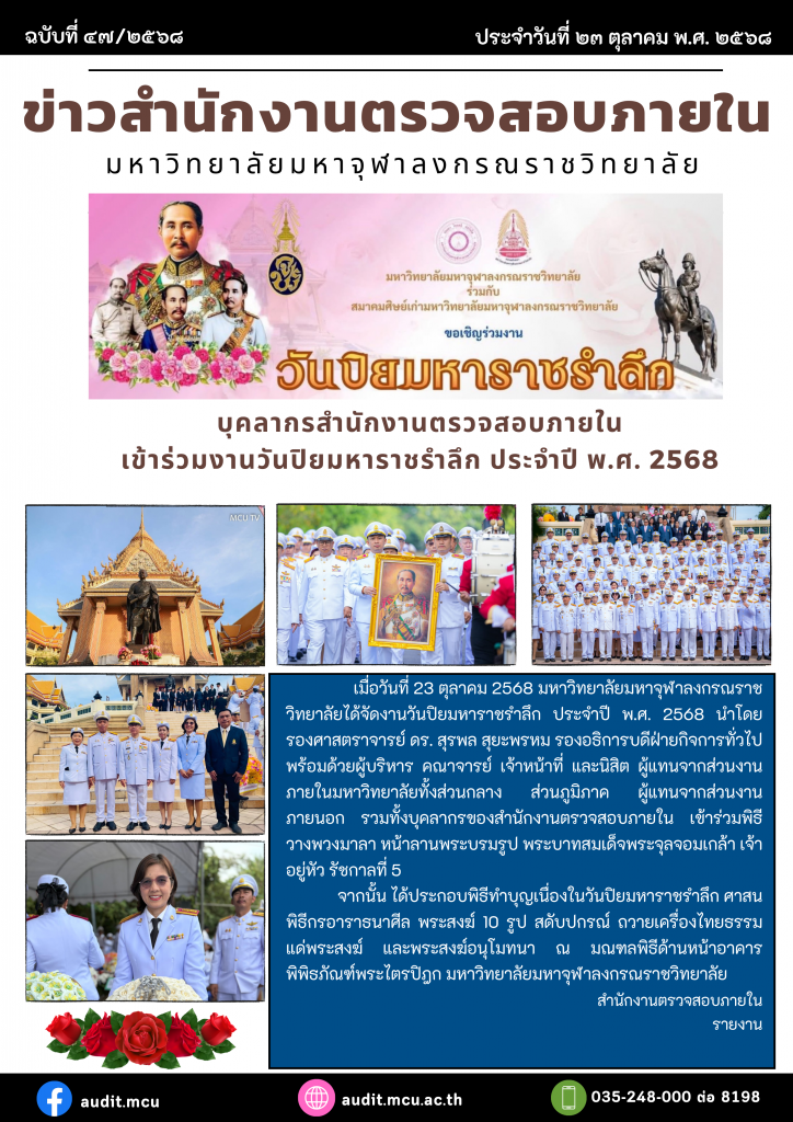 ข่าวกิจกรรม / ข่าวประชาสัมพันธ์ / ประมวลภาพการตรจประเมินฯบุคลากรสำนักงานตรวจสอบภายใน เข้าร่วมงานวันปิยมหาราชรำลึก ประจำปี พ.ศ. ๒๕๖๘ November 3, 2025November 3, 2025 - by เว็บมาสเตอร์
