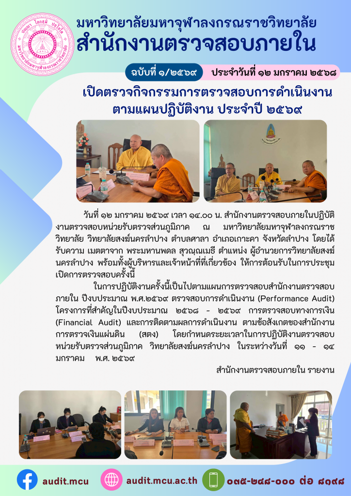 ข่าวกิจกรรม / ข่าวประชาสัมพันธ์ / ประมวลภาพการตรจประเมินฯเปิดตรวจกิจกรรมการตรวจสอบการดำเนินงาน ตามแผนปฏิบัติงาน ประจำปี ๒๕๖๙ (วิทยาลัยสงฆ์นครลำปาง) January 13, 2026January 13, 2026 - by เว็บมาสเตอร์